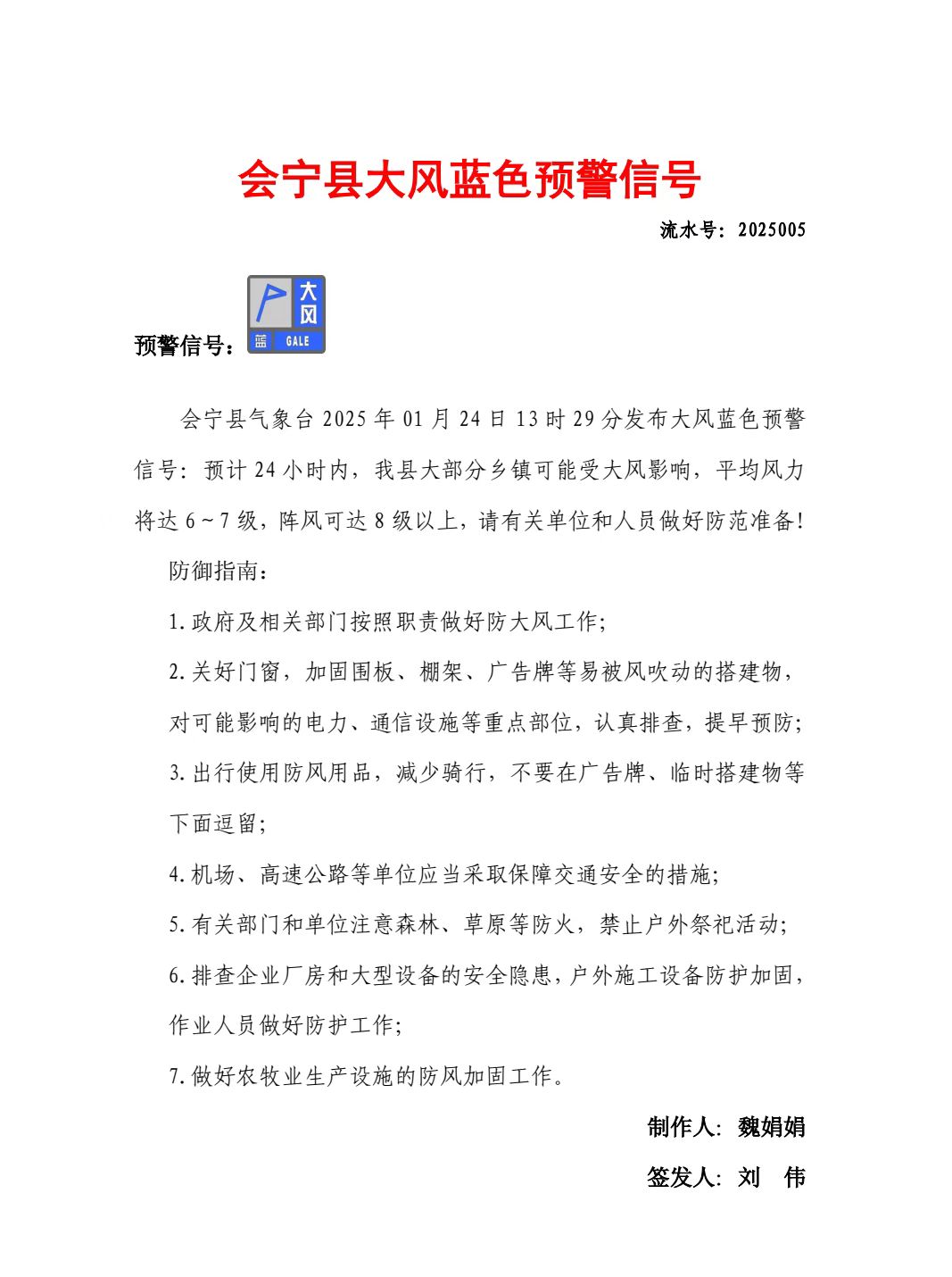 会宁县大风蓝色预警信号